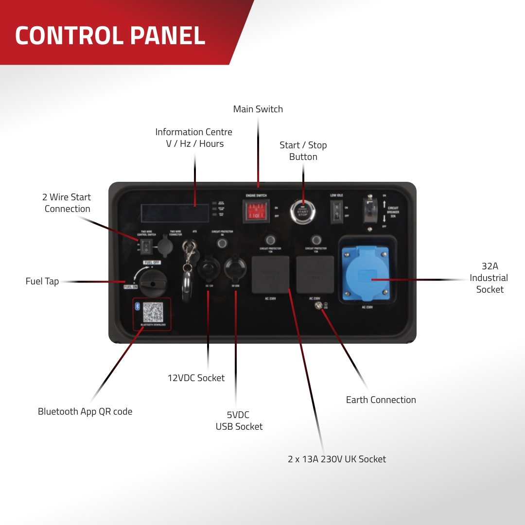 - Electric start, remote start and 2-wire start connection